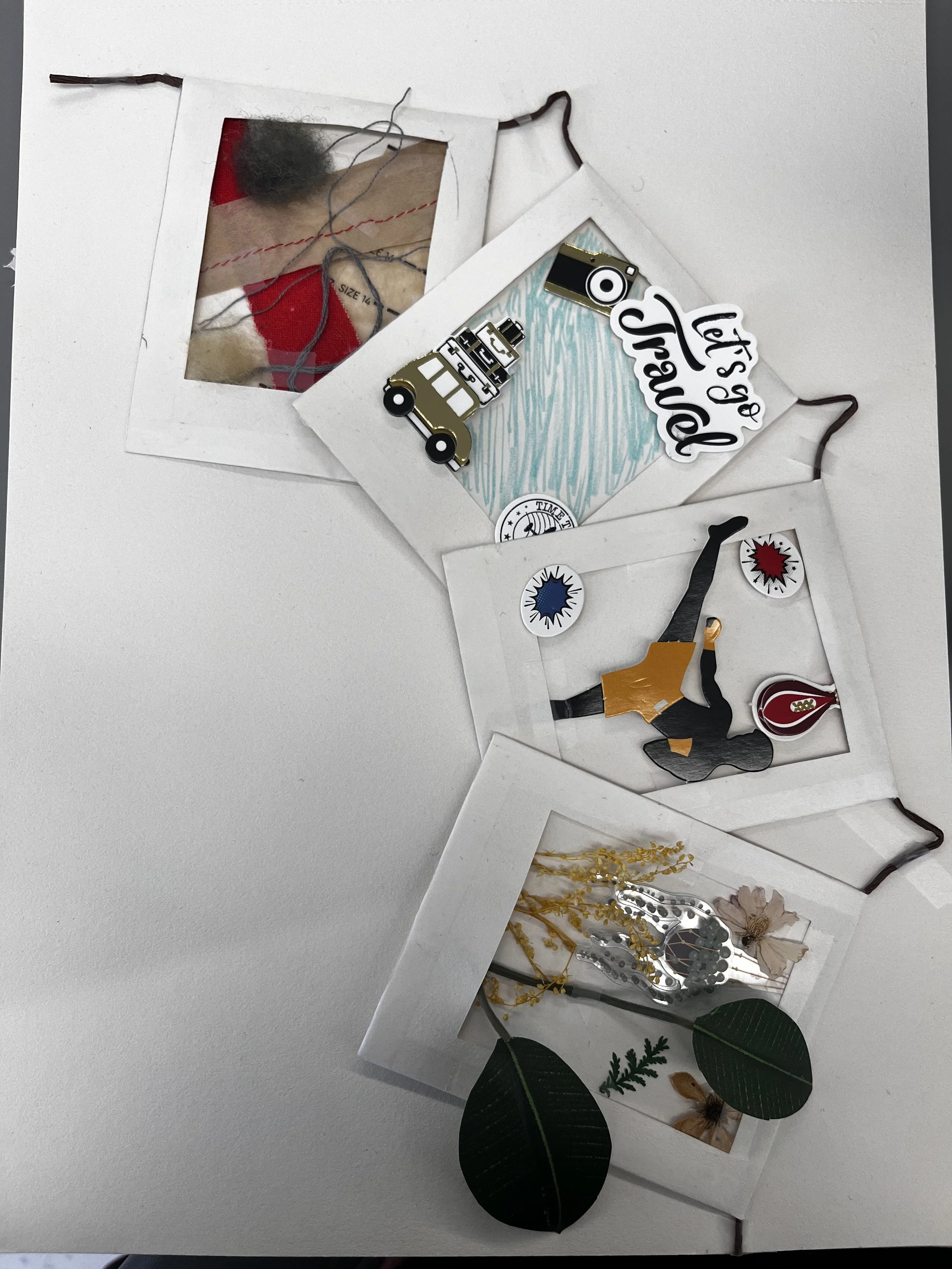At first, I was lost in which direction I should be going because I wanted to do so many things for my project! During this stage, we did collages that would inspire us, and both of the collages were about spending time physically, including traveling, gardening, and working out. That led my blurry idea from a stationary brand with planners into a brand that introduces different crafting hobbies.
